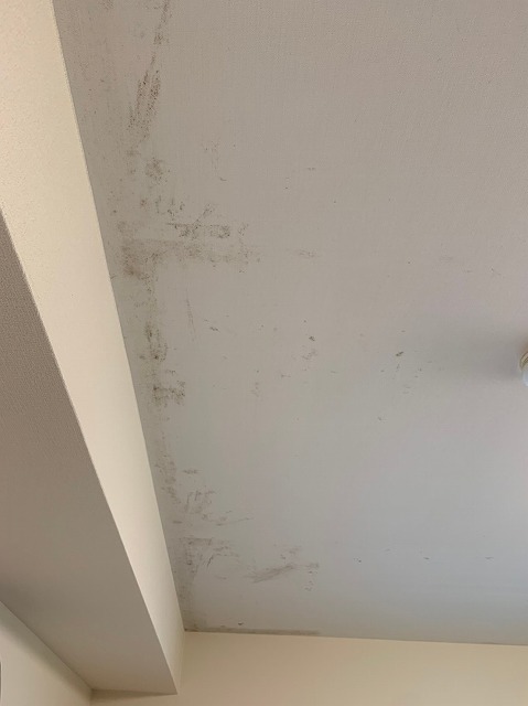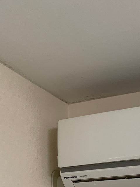 天井や壁に黒カビが発生していました。