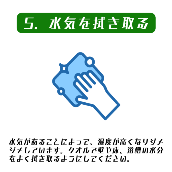 壁・床・浴槽の水分を