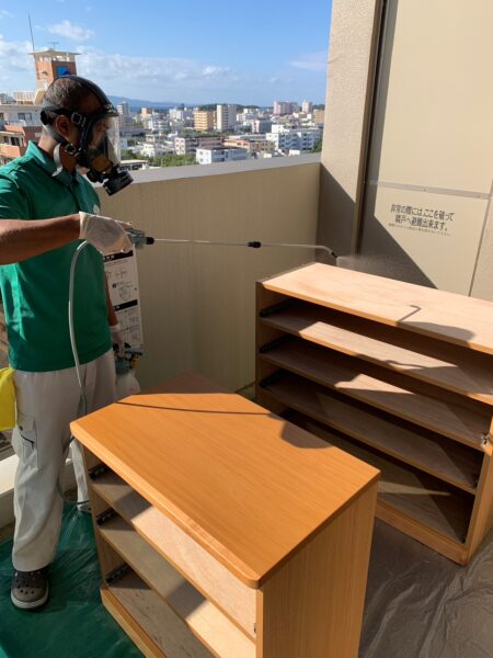 【恩納村】賃貸マンション 出張から帰ってきたら家具にカビが・・・家具のカビ除去・防カビ施工事例|沖縄カビ対策専門エルイズビー