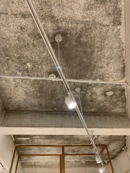 ・高い天井に黒カビ