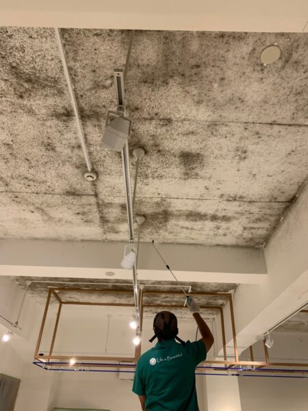 天井に黒カビが発生していました。